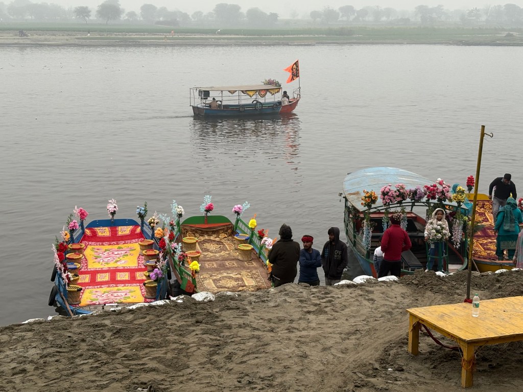Boats along Yamuna River.