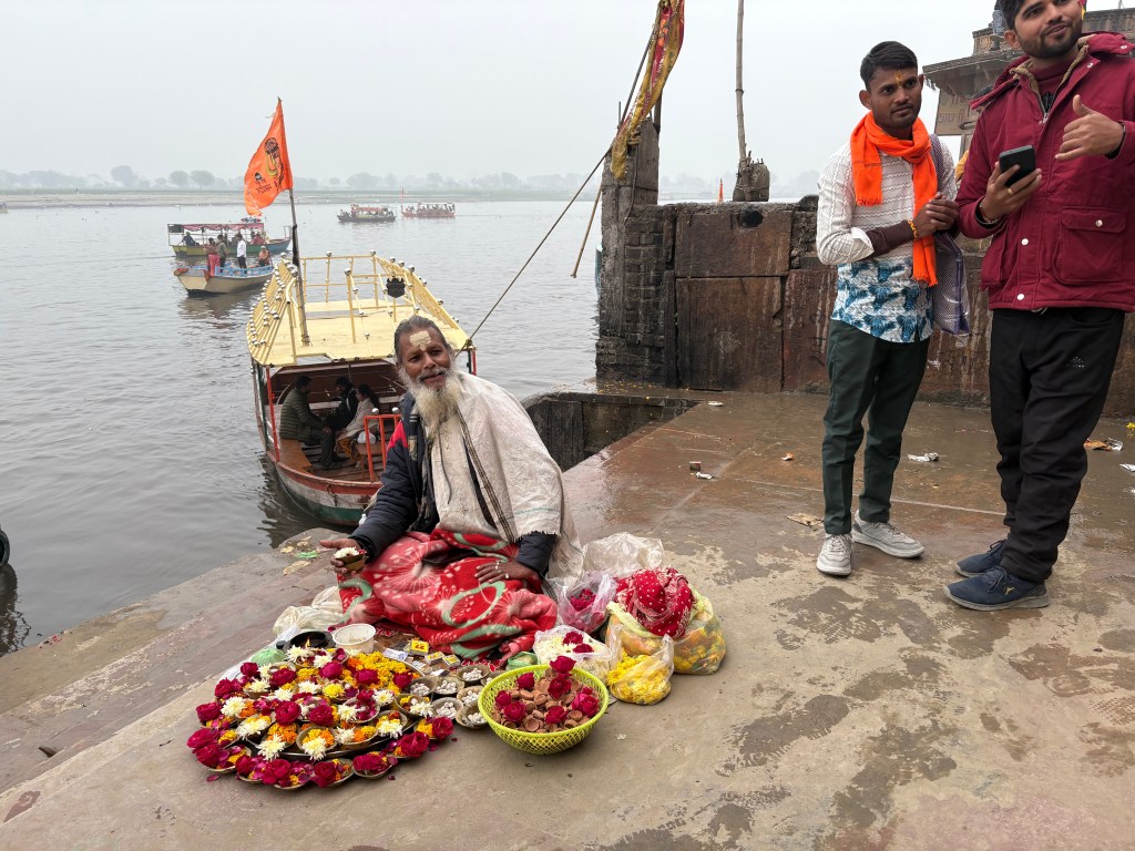 Man selling offerings at Keshi Ghat