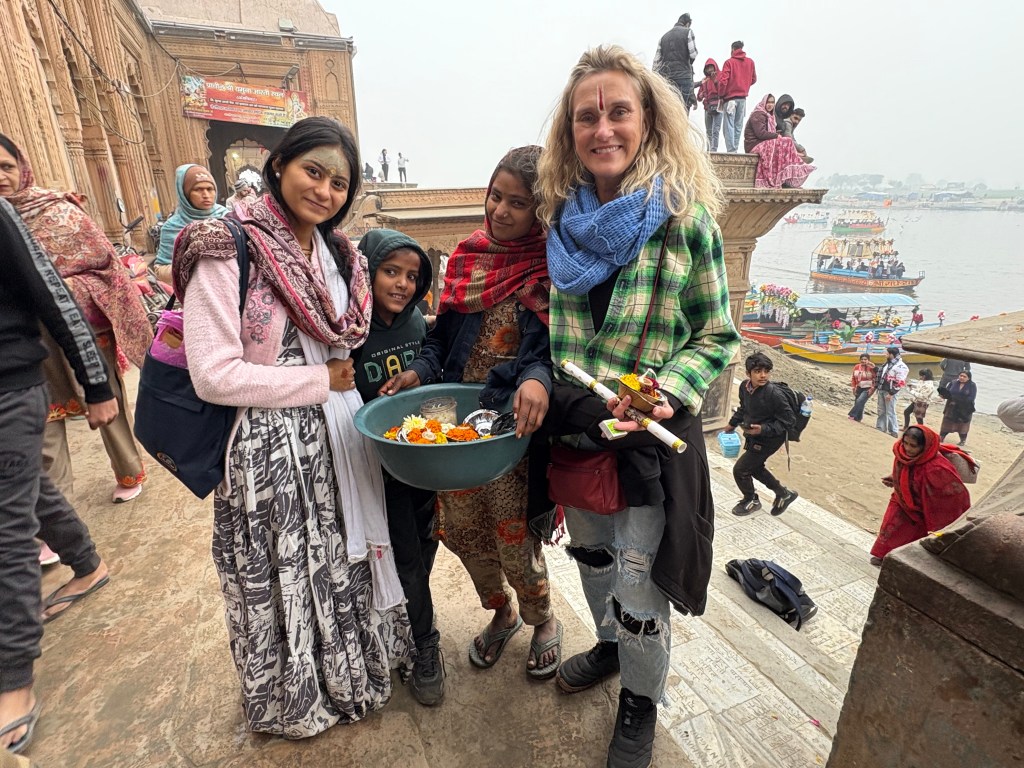 Rhonda with some new friends at Keshi Ghat