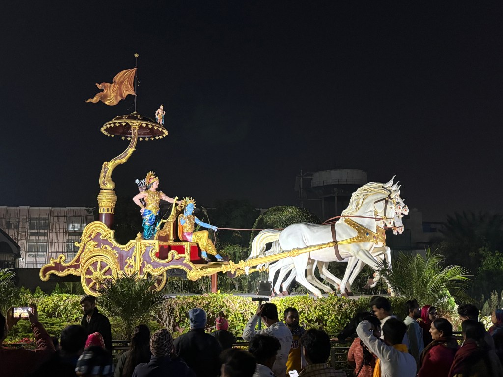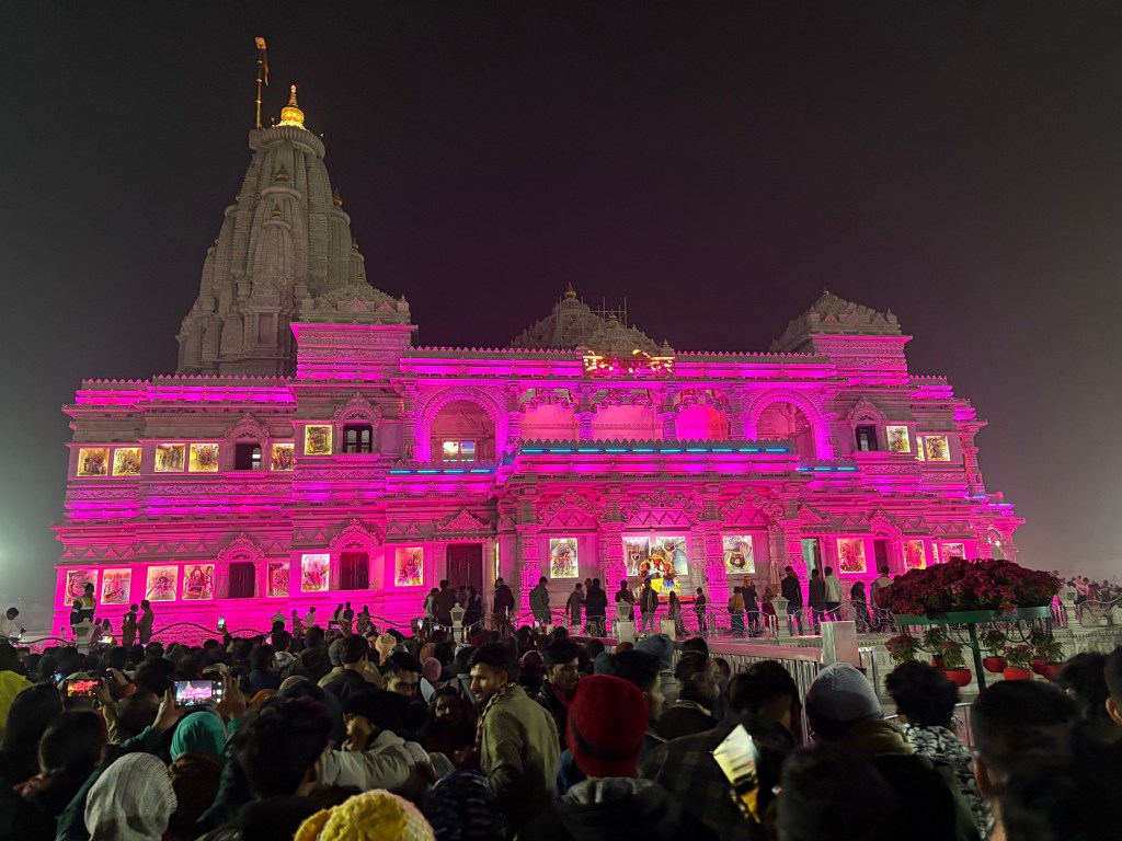 I followed the crowd as we went clockwise around the temple. On our perimeter were elaborate displays and statues depicting events from Krishna’s life here in Vrindavan and Mathura. This is where Krishna descended 5,000 years ago and performed divine lilas (cosmic play). The fervor with which the gopis (cowgirls) adored the young Krishna and displayed pure, unconditional love hasn’t diminished in 5,000 years.