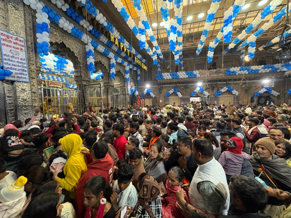 Ravi picked us up at the hotel in the morning and off we went on the motorcycle into the jubilant heart of Vrindavan: Banke Bihari Temple. This temple is a spiritual haven for devotees of Lord Krishna and one of the most visited temples in India. We were about to find this out in the most intense and mind-shattering way.