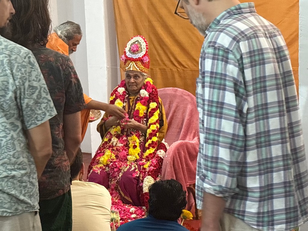 Later that day I connected with a local woman, Soly, I had met the previous day at a restaurant where we shared a table. She sat beneath a picture of Guruji and Babaji, so I told her that was my Guru, and her eyes lit up. Although she was a devout follower of Sri Ramana Maharshi, she had a deep connection with Babaji. We had a wonderful conversation about spiritual matters, and before long she told me about a saint who lived nearby and from whom we could receive darshan the next day.