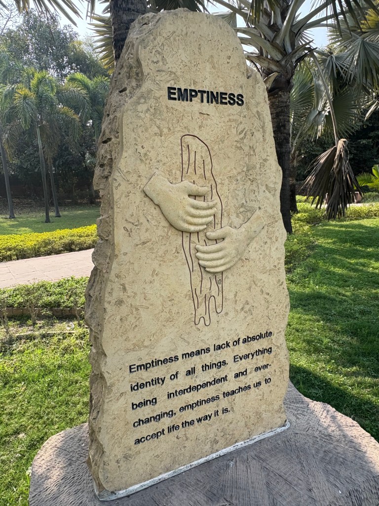 On my second visit I really looked forward to just chilling in the Garden of Spiritual Wisdom. To my delight, I was the only visitor in its spacious grounds; only a few groundskeepers sat under trees or watered vegetation. Stone paths led through lovely gardens and sanctuaries for peace and meditation. I followed along the paths for awhile, reading the way of wisdom, and then took off my shoes and went into the grass to further view more stone engravings.