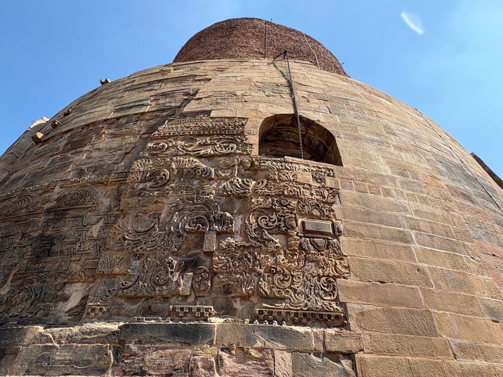 After walking among the ruins, pondering how empires and time have crushed the mightiest of man’s makings, I stood near some Buddhist monks meditating beneath a tree and stared at the Dhamek Stupa. Standing at over 40 meters in height, the stupa was built in the 5th century by the great Mauryan Emperor Ashoka. It holds a significant place in Buddhist history and legacy as its inception marks an important moment in the spread of Buddhism, as Ashoka, following his conversion to Buddhism, went on a mission to propagate the teachings.