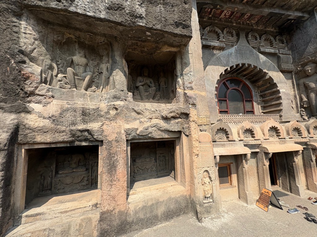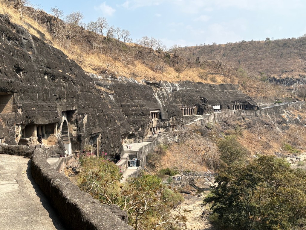 Standing on the edge of the ravine, I gazed down the line of caves and tried imagining when these caves vibrated with the meditations of their creators. The spacious halls are carved out of flood basalt and granite rock, excavated from the cliff face.